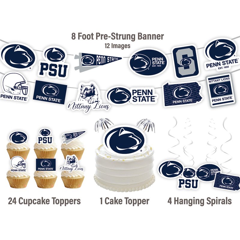- 🏈 Quick & Easy Party Decorations – Helps you conveniently throw a memorable birthday, graduation, or football party with ease. Party kit includes 8 foot pre-assembled Penn State banner, Penn State cake topper, 24 Penn State cupcake toppers, and 4 hanging swirls. With these beautiful and unique Penn State decorations you’ll celebrate with ease so that you can enjoy the party, too!