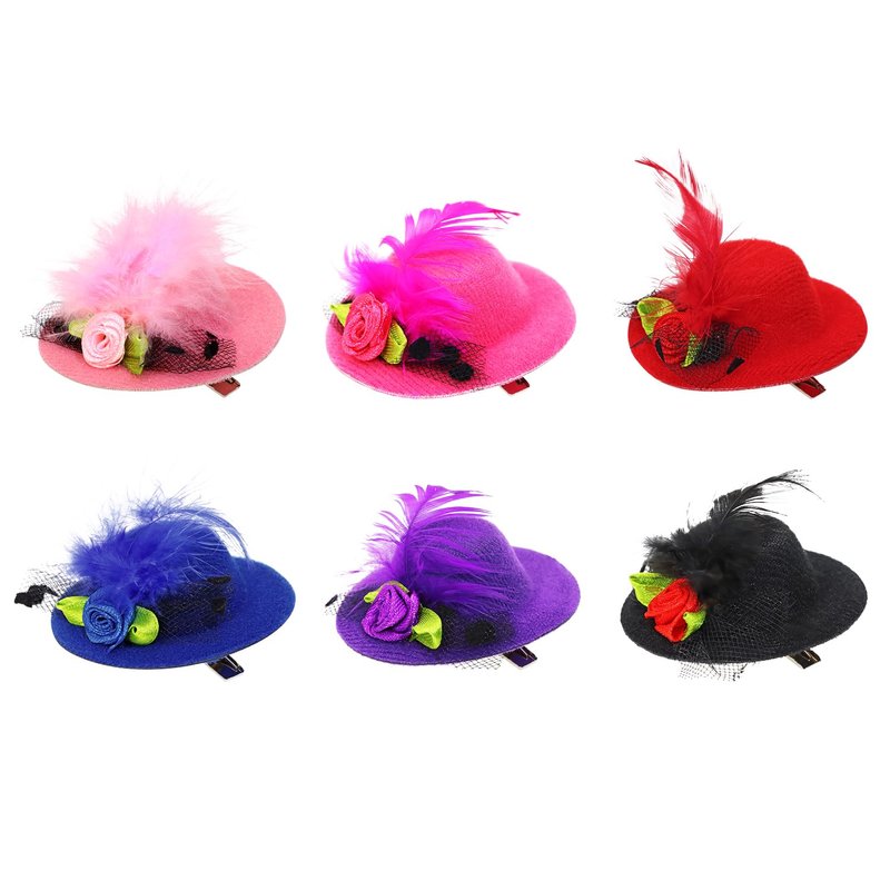 - Package includes 6pcs tiny top hat hair clips in 6colors, black, red, pink, blue, purple and rose red