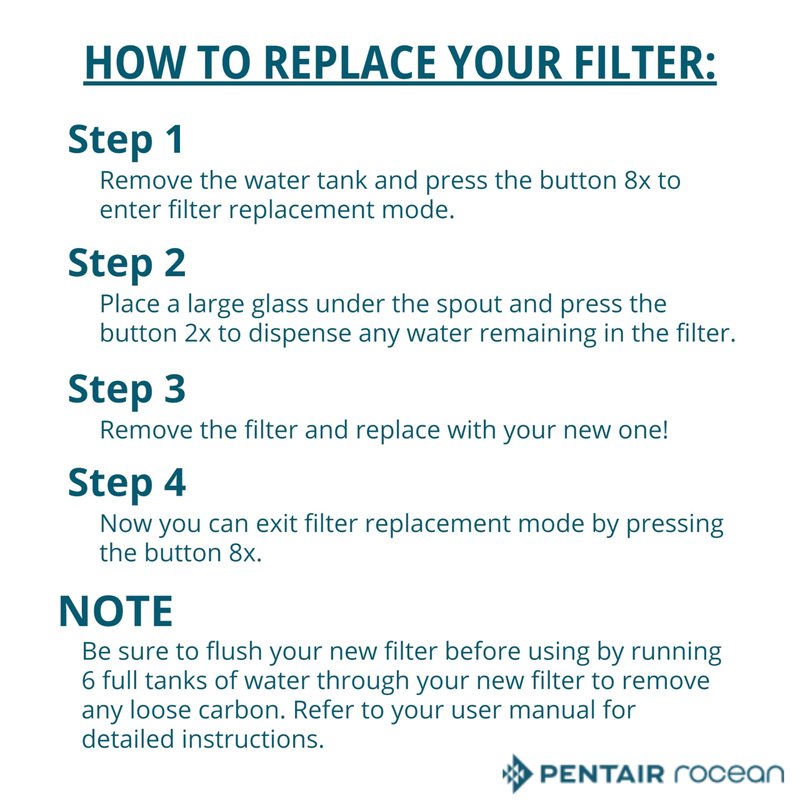 Pentair Rocean Reservoir Replacement Filter Cartridge for Rocean Countertop Tap Water Filter System