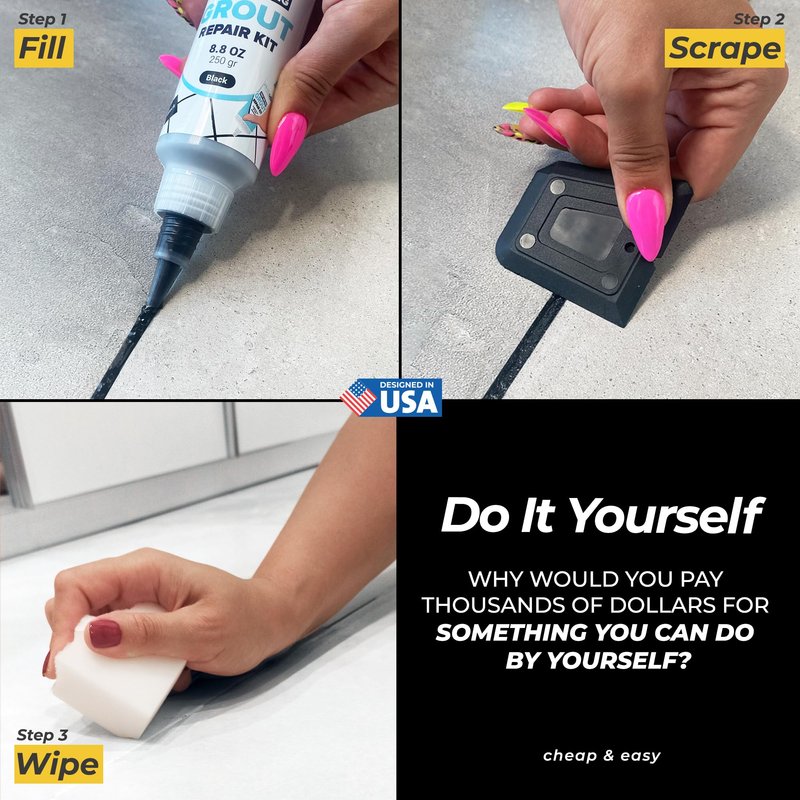- WATERPROOF, ACTUAL GROUT - Black grout has water-resistant fast-drying features. Black tile grout is designed to instantly color and cover stained, dirty, or old grouts. Makes all your bathroom, kitchen surfaces, tile floor, countertop, or wall look new again. It is actual grout, not just a paint
