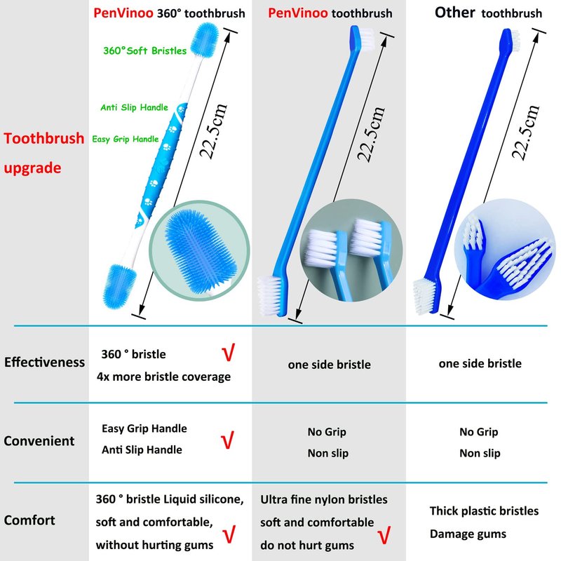 PenVinoo 360 ° Dog Toothbrush Pet Toothbrush 360 ° Finger Toothbrush Small to Large Dog