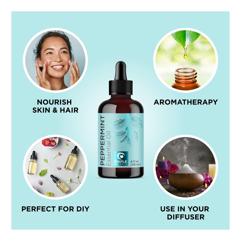 Peppermint Essential Oil for Diffuser Aromatherapy - 100% Pure Peppermint Oil for Hair Skin and Nails Plus Undiluted Refreshing Aromatherapy Essential Oil for Diffusers Baths and Topical Uses 4oz