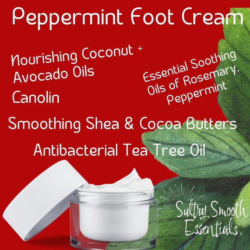 Ultra Moisturizing with Smooth Shea + Cocoa Butters and cooling skin nourishing Avocado, Coconut and Vitamin E oils, Lanolin and Essential Oils of Peppermint and Rosemary. This nourishing thick cream deeply penetrates to soothe and repair damage, leaving your feet feeling soft and rejuvenated. Handcrafted in Ohio, USA.