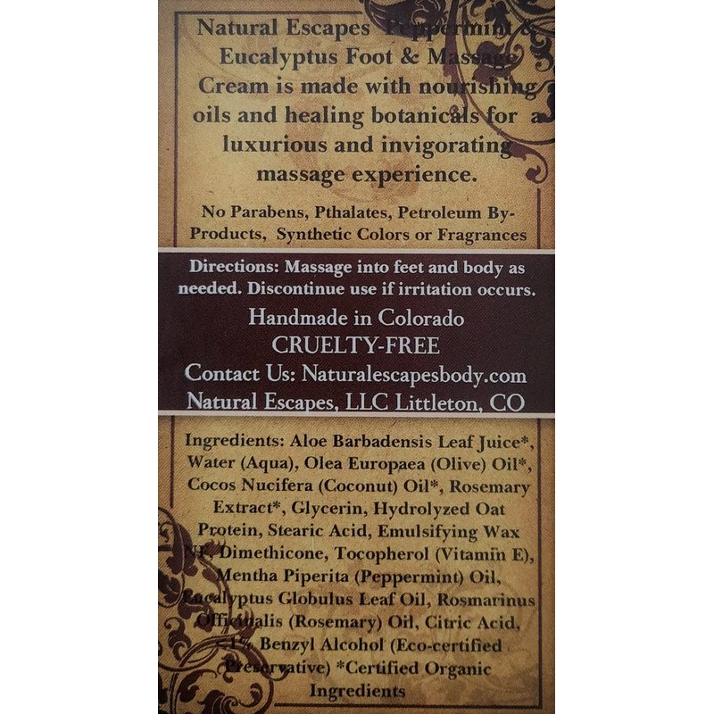 Peppermint, Rosemary & Eucalyptus Massage & Foot Cream | Repairs & Hydrates Dry Cracked Feet | Therapeutic Massage Cream | Soothing Peppermint Foot Lotion | 4oz