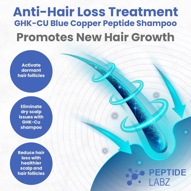 PeptideLabz GHK-Cu Copper Peptide Shampoo - Anti Hair Loss Shampoo - Promotes New Hair Growth, Blue