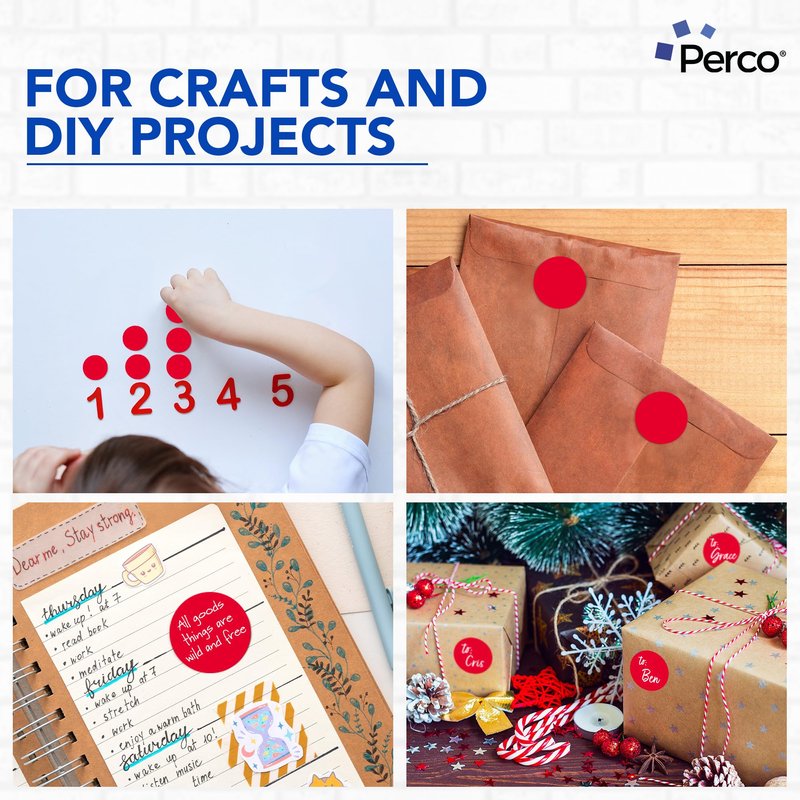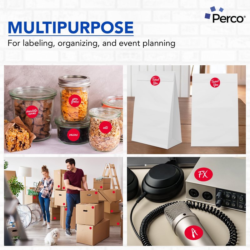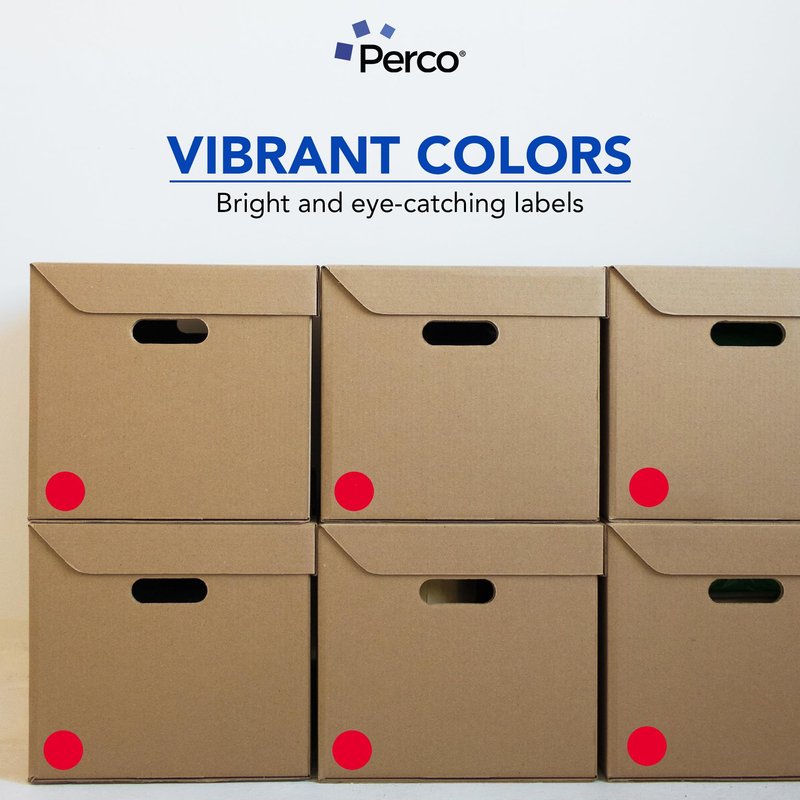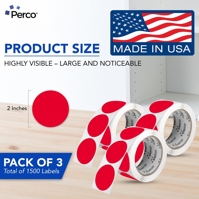 Perco Red 2-Inch Round Circle Dot Sticker Labels - Multi-Roll Pack (3 Rolls, 500 Labels Each) - Permanent Adhesive, Vibrant Colors, Strong Hold - Perforated for Easy Use - Made in USA