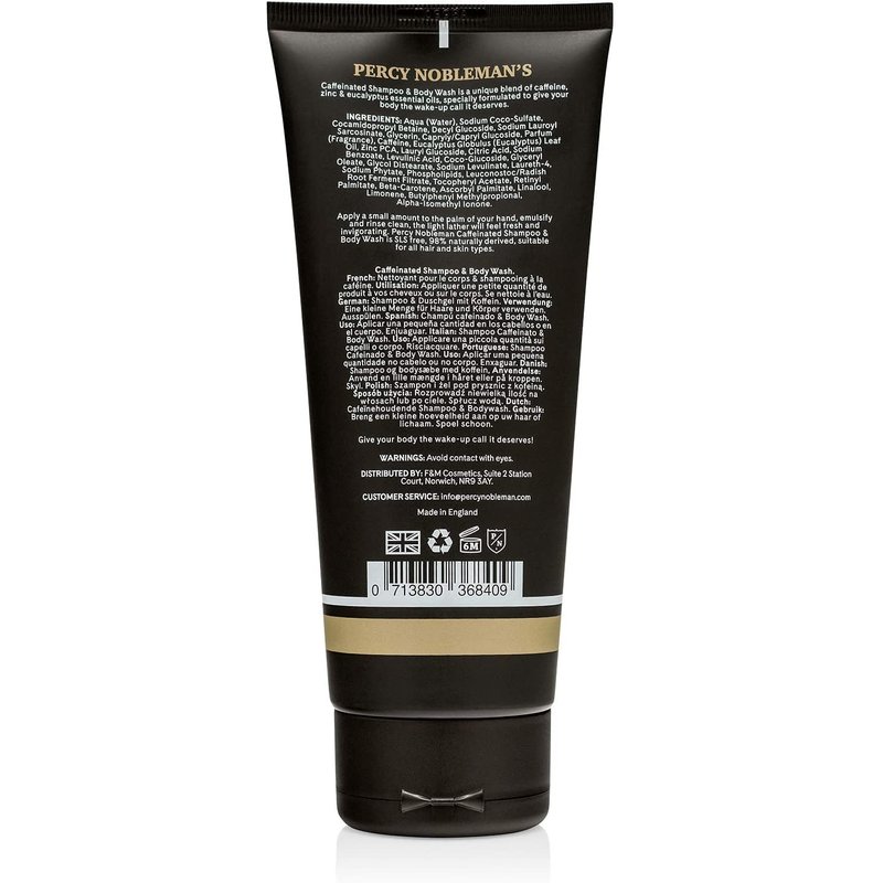 Crafted with a unique blend of Caffeine, Zinc and Eucalyptus essential oils, Percy Nobleman Caffeine Shampoo & Body Wash recharges your skin and scalp, leaving you wide awake and ready to start your day. Combined with natural surfactants derived from coconut, this wash provides a gentle cleansing without stripping your skin and hair of their natural pH oil balance.