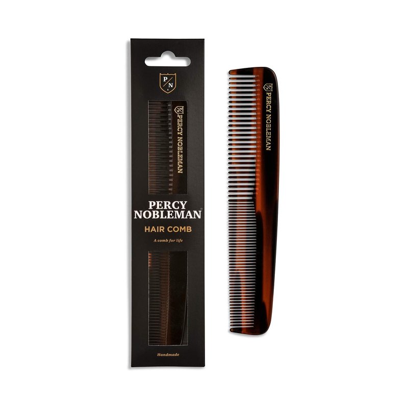 Percy Nobleman Hair Comb delivers a sleek, stylish and traditionally modern product to keep you looking sharp from the break of day. Combing your hair should be a stress and pain free experience, which is why this comb is made from soft, yet sturdy, tortoiseshell acetate and specifically rounded teeth.