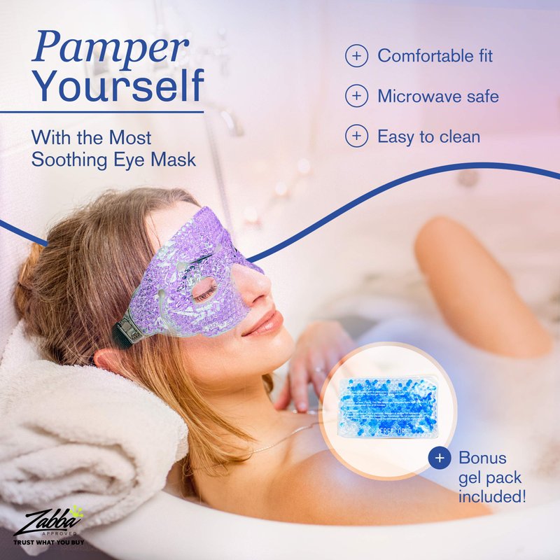 PerfeCore Eye Mask Get Rid of Puffy Eyes Migraine Relief, Sleeping, Travel Therapeutic Hot Cold Compress Pack With Cover Gel Beads, Spa Therapy Wrap for Sinus Pressure Face Puffiness Headaches Purple