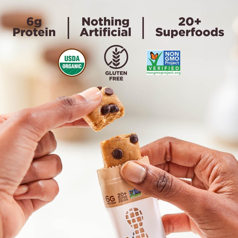 - SUPERFOOD: 20+ organic superfoods, like fruits, vegetables, seeds, and oils, in a chocolate chip peanut butter protein snack food bar that’s a convenient source of vitamins, minerals, natural energy, and clean eating