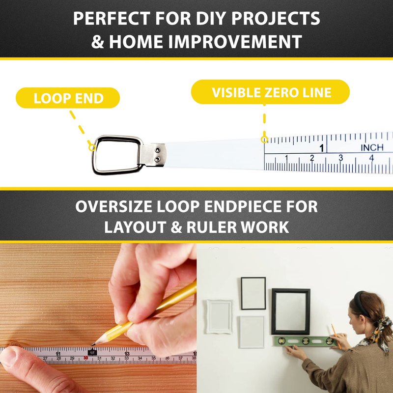 - EASY READ TAPE MEASURE - Includes inches and metric measurements down to millimeters on both sides; High contrast, easy to read numbers.