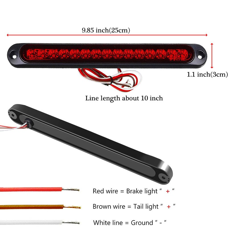 - 【Easy to Install】White Wire - Ground; Red Wire - high brightness; Brown Wire - low brightness. Package Included: 2x LED Tail Light,4x Screws,4x Screws Caps.