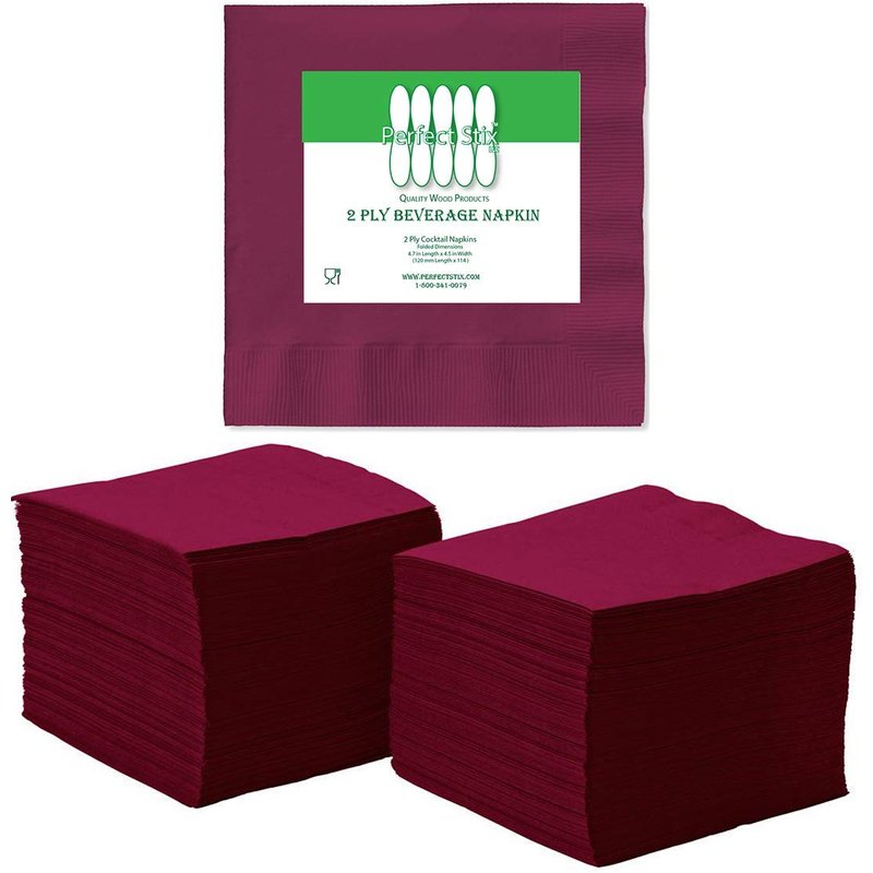 Perfectware - 2 Ply Burgundy Bev-250 2 Ply Burgundy Beverage Napkins- Pack of 250ct