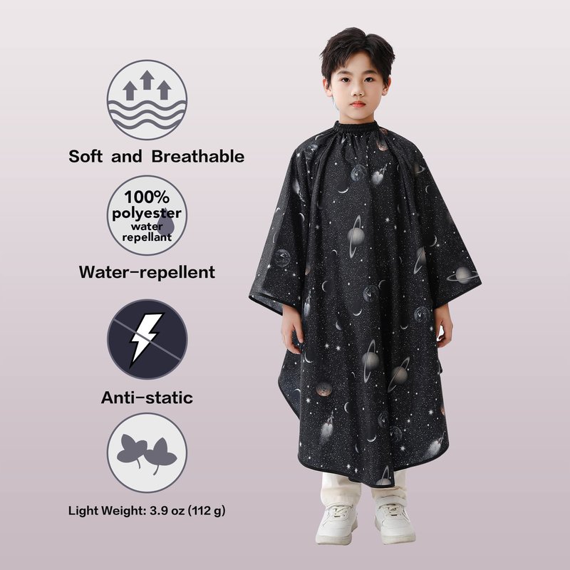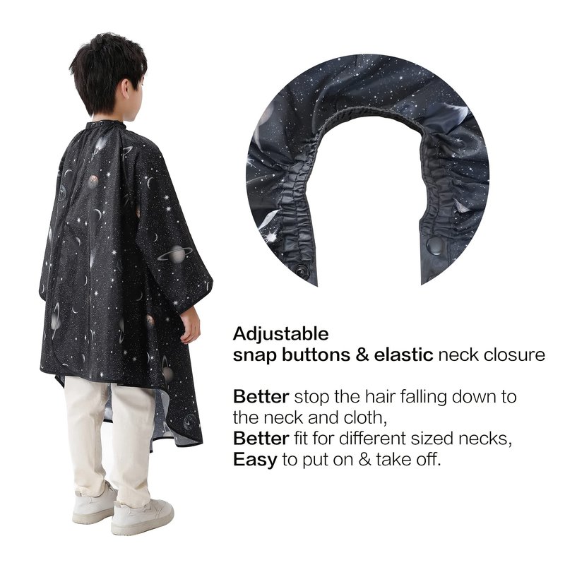 PERFEHAIR Kids Hair Cutting Cape with Sleeves, Kids Barber Cape Haircut Cape for Boy & Girls, Professional Salon or Home Hair Cut Cape-Black Space Printing