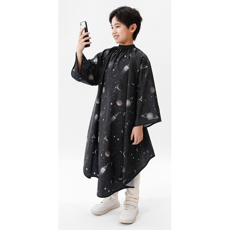 Kids Hair Cutting Cape with Sleeves-Black Space Printing.