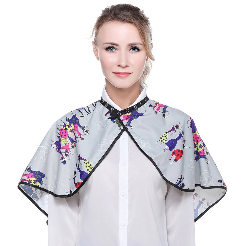 - Adjustable snap buttons neck closure of the makeup cape.