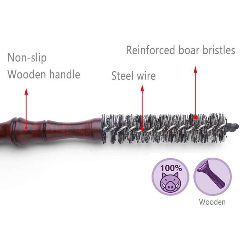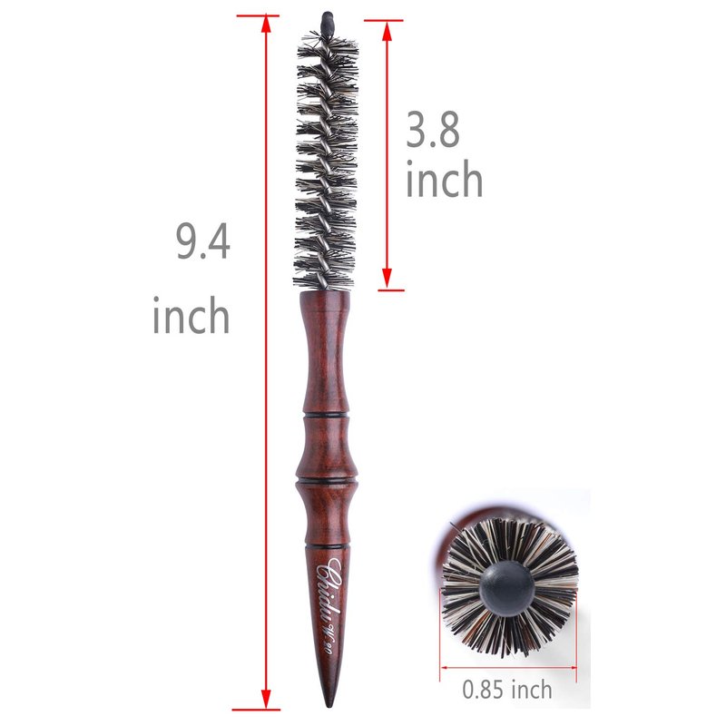 PERFEHAIR Mini Boar Bristle Round Brush for Short Hair, Small Round Barrel Brush for Blow Drying-0.85 Inch Diameter