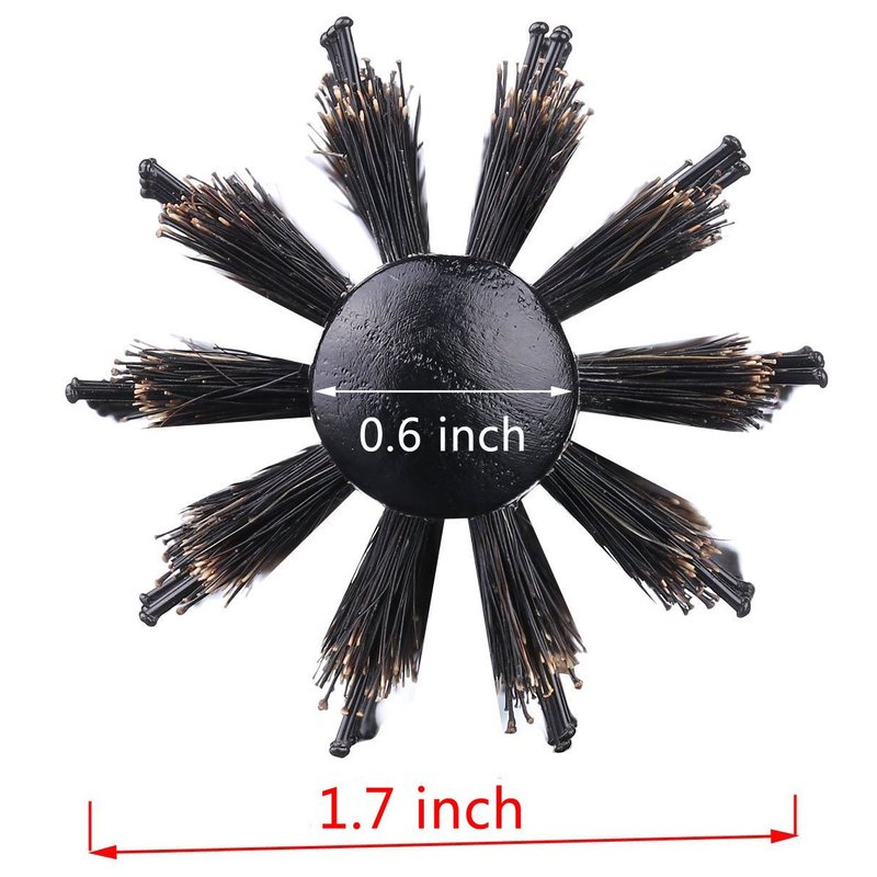 - Nylon and boar bristles round hair brush, Brush Diameter : 1.7 inch including bristles, 0.6 inch not including bristles .