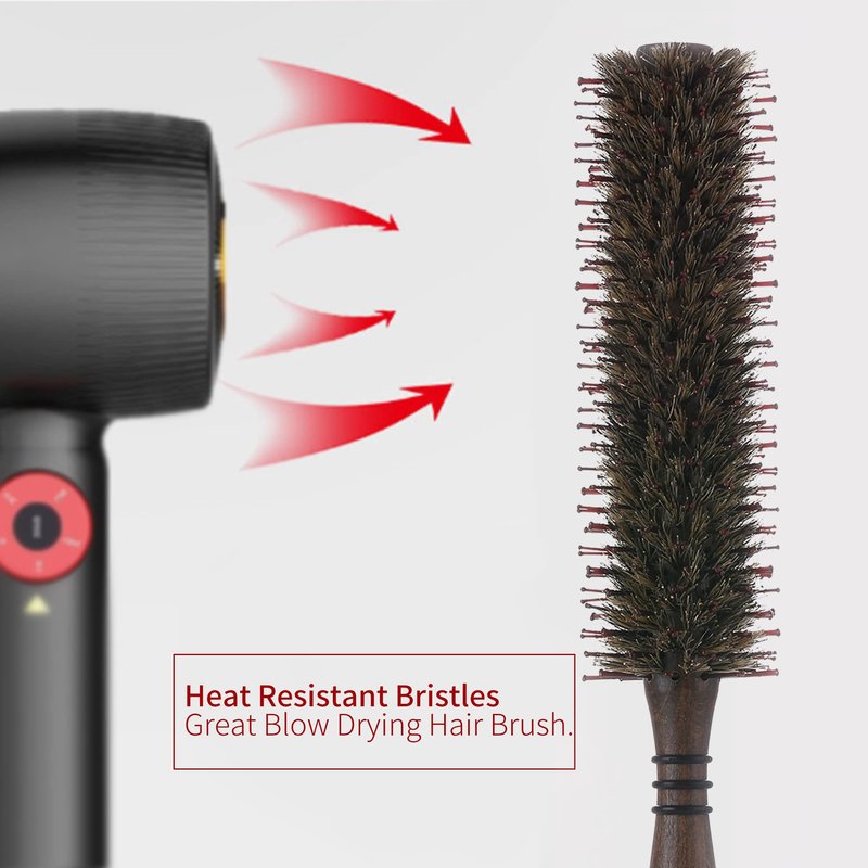 - Stronger Grabbing Hair Ability - Twill Style Bristle Design boar bristle round brush, easier to hold hair, faster to blow dry and style hair.