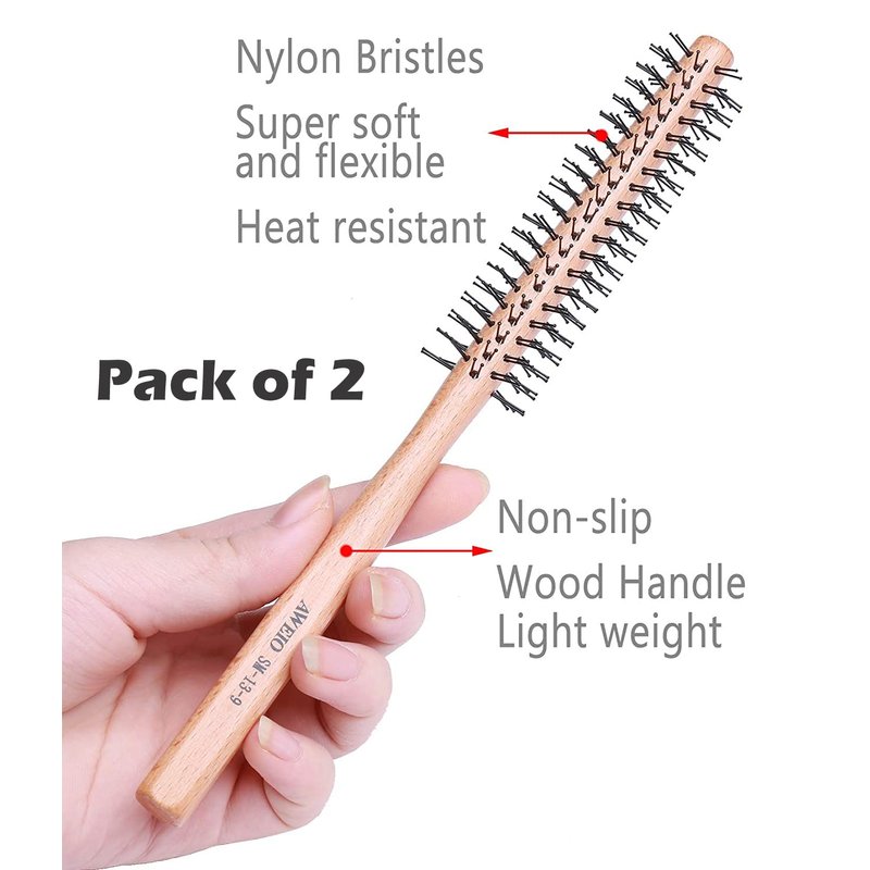 - [Pack of 2] Small round hair brush with soft nylon bristles, great for grabbing and volumizing short hair, thin hair or beards.