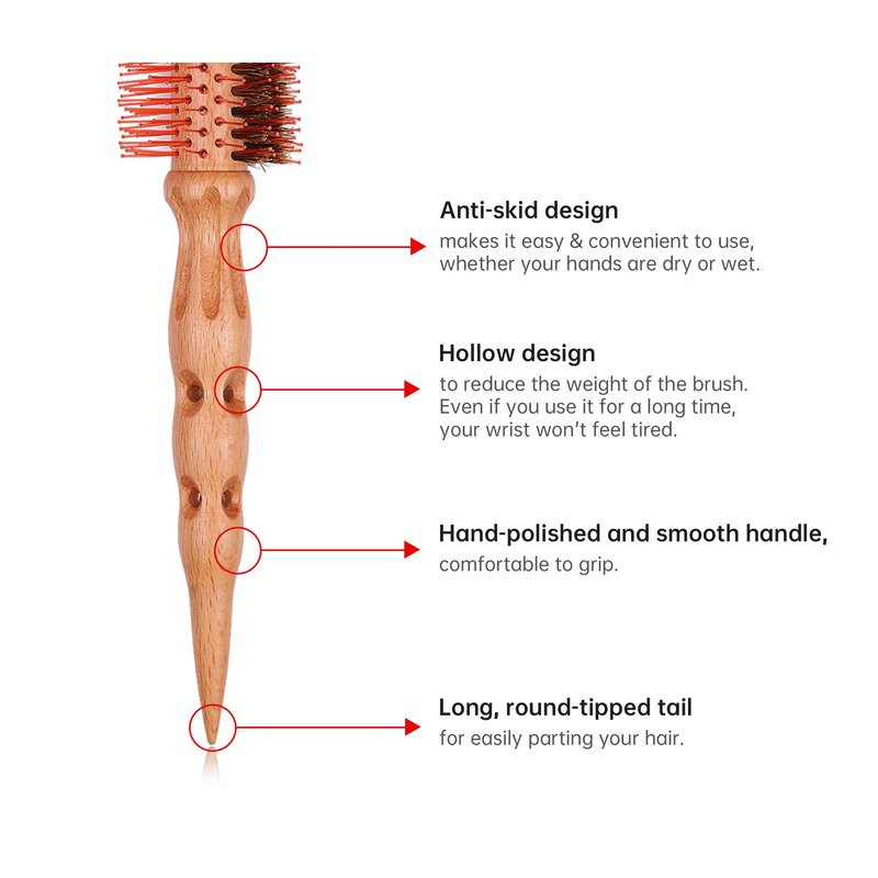 - Specially hand-polished anti-slip wooden handle that feels comfortable, light, easy to hold and use. Drop-resistant, durable, long round-tipped tail that easily parts your hair to achieve any hairstyle.