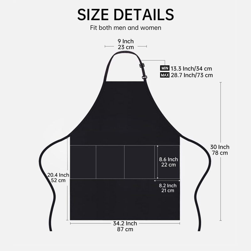 - ADJUSTABLE WIDE NECK STRAP & WAIST TIES: This black hair stylist apron features adjustable waist ties and an adjustable neck strap to comfortably and securely fit all body types. The apron is designed to provide a perfect fit, so you can work with ease.