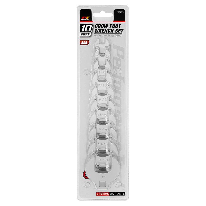Performance Tool W453 10-Piece SAE Open End Crowfoot Wrench Set