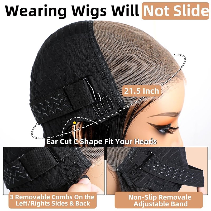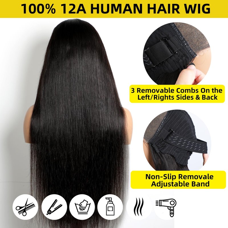 - 【Pre Cut Wear and Go Glueless Wig Cap Structure】Glueless straight 7x5 closure wigs human hair pre plcuked pre cut,with adjustable anti-slip elastic band, 3D elastic dome cap, 3 removable combs at right/left sides & back, and the C shape ear design fits the ear better, protect your scalp well, firmly fixed on your head, easy to wear & take off.