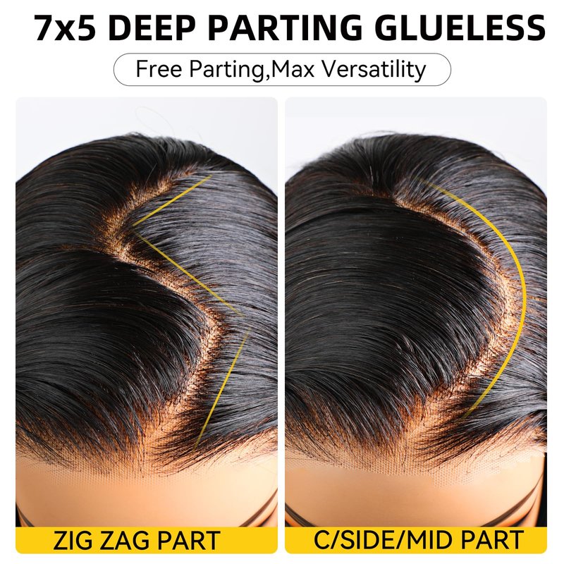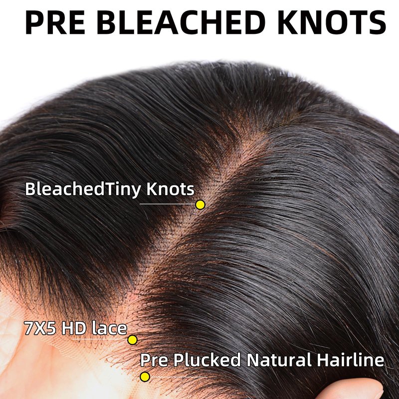 - 【Wear and Go Glueless Wig Advantage】7x5 Glueless closure wigs human hair wigs for black women pre plucked, straight lace front wigs human hair, 30 seconds to wear glueless wigs. Pre cut lace glueless wig easy to curl and install, hold curls well, no glue& no gel, no skills needed, be friendly for beginners.
