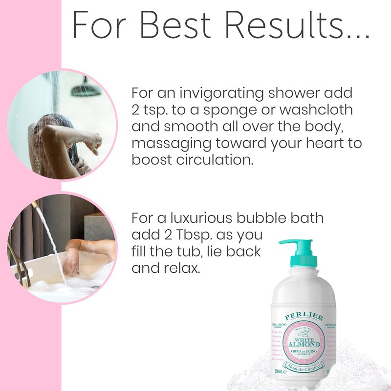 Perlier White Almond Shower & Bath Cream - Nourishing & Soothing Luxury Bath Cream Made with Almond Oil for Deep Moisturization and Hydration (16.9 Fluid Oz.)