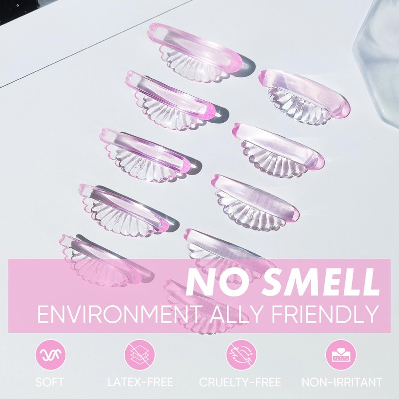 1. 5 sizes lash lifting shields-XS, S, M, L, XL giving you the Perfect Curl in an upgraded cartoon design, Say goodbye to eyelash curlers!