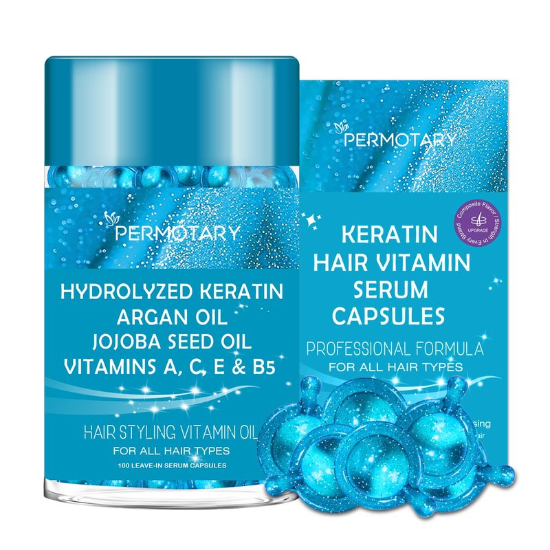 Permotary 100Pcs Hair Vitamin Serum Capsule, Hair Treatment Serum Oil, No Rinse Conditioner with Moroccan Macadamia Avocado Oils, Vitamins A C E Pro B5 for Frizzy Dry & Damaged Hair