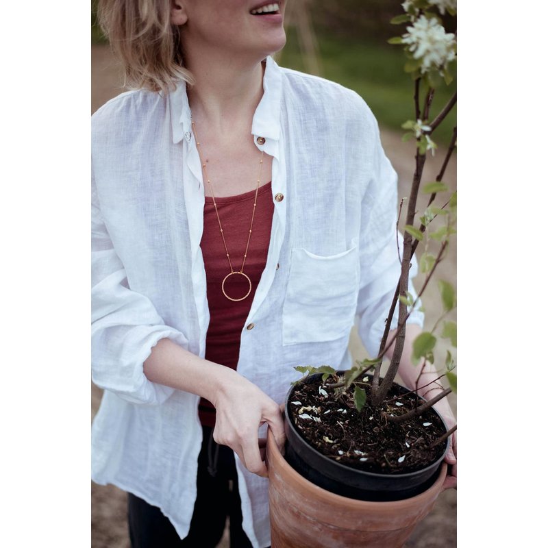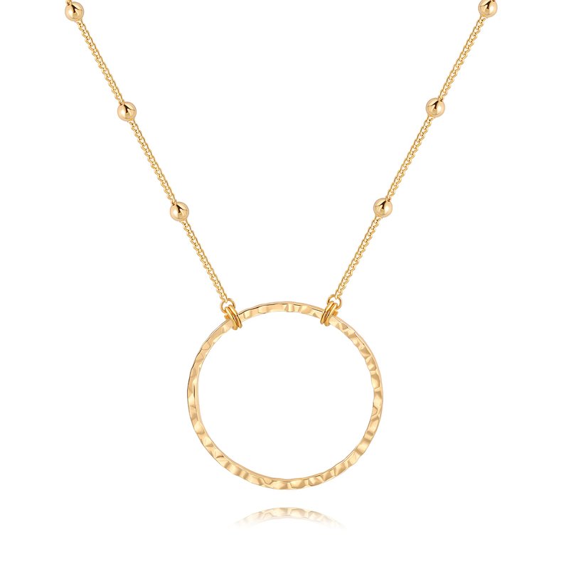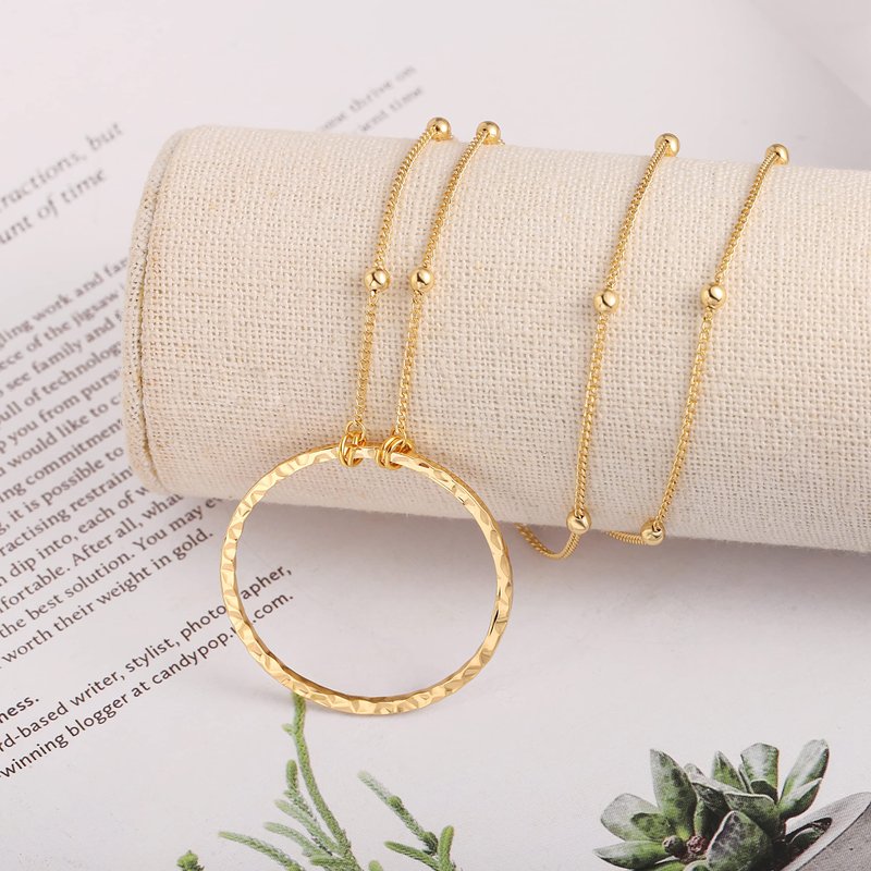 - [Long Chain Necklace] This long pendant necklace comes with a special hammered hollow ring pendant and 18K gold-plated satellite beaded chain. The chain length of the gold chain necklace is 31 inches. Although it is not adjustable, the chain is long enough so that you don't have to worry about wearing it. The diameter of the hammered circle pendant is 1.6 inches. This 100% handmade jewelry is free of lead and nickel and is very comfortable to wear.