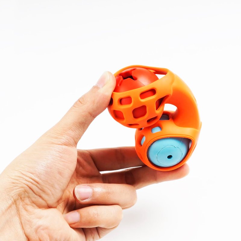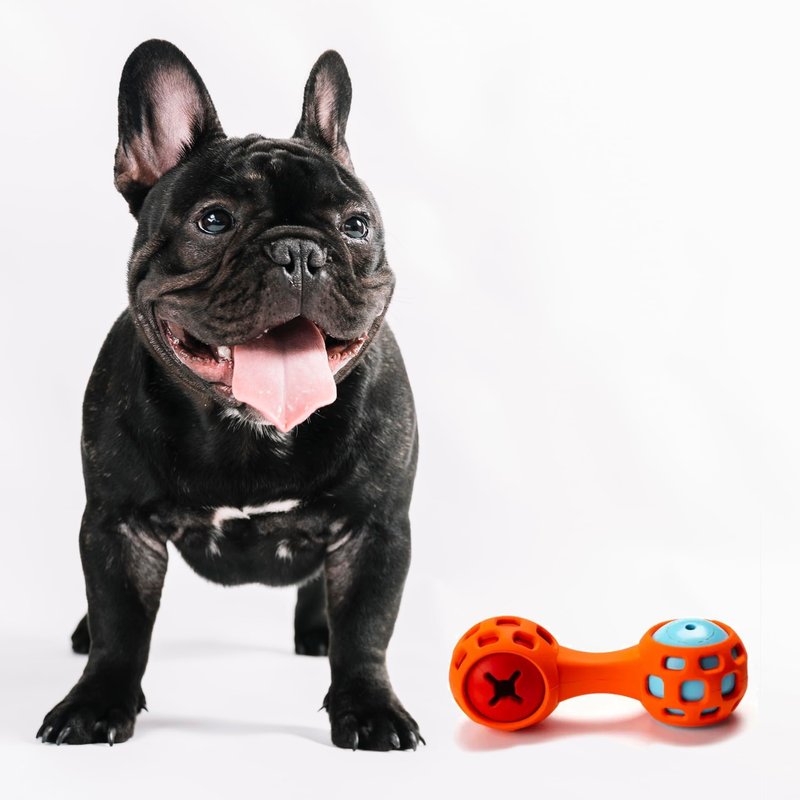 1. Made of natural rubber, safe and non-toxic. 2. Resistant to molar bite 3. Treat dispenser 4. Squeaky ball Functions: 1. Suitable for training 2. Satisfies the desire to chew 3. Keeps our dog's mind active 4. The red ball works as a treat dispenser that combines two of our dog's favorite activities: playing and eating 5. The blue ball emits sound that serves to increase the pleasure of our dogs when playing with them