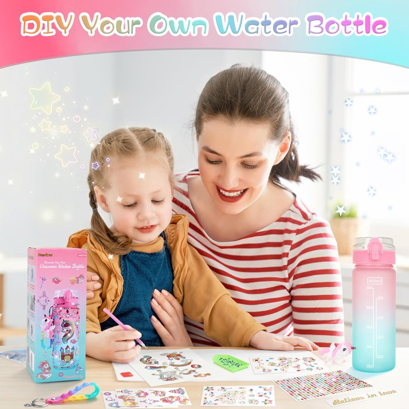 PERRYHOME Decorate Your Own Unicorn Water Bottle Kits for Girls, Unicorn Toys for Girls Age 4-10 Painting Crafts Kit, Fun Arts and Crafts Kits 6-12 Year Old Toddler Girls Birthday Christmas Gifts Toys