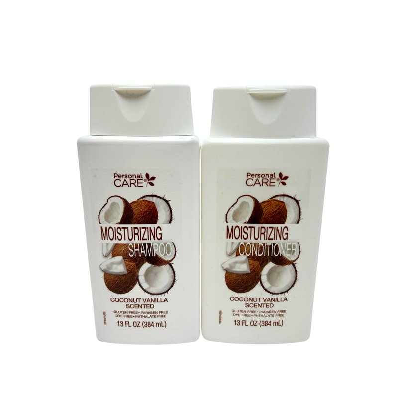 Transform your hair care routine with this luxurious moisturizing shampoo and conditioner set. Infused with coconut and vanilla, this duo delivers a delightful tropical experience while nourishing your hair. Each bottle contains 13 fl oz (384 mL) of product, making it perfect for daily use. The formula is thoughtfully crafted to be gluten-free, paraben-free, dye-free, and phthalate-free, making it suitable for those with sensitive skin and various hair types. The rich, moisturizing formula helps maintain your hair's natural balance while leaving it feeling soft, manageable, and beautifully scented with the warm, inviting aroma of coconut and vanilla. This Personal Care set offers a spa-like experience in the comfort of your own home, transforming your daily hair care routine into a moment of indulgence.