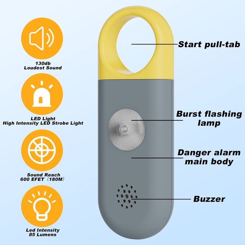 130 db super loud alarm sound, Draw others attention even in a far distance. When faced with danger, turn on the alarm to quickly attract attention and ask for help