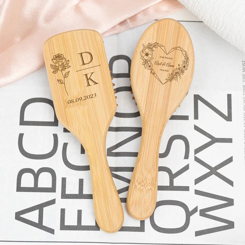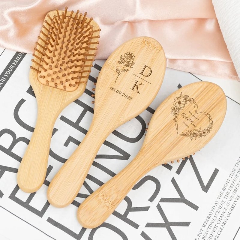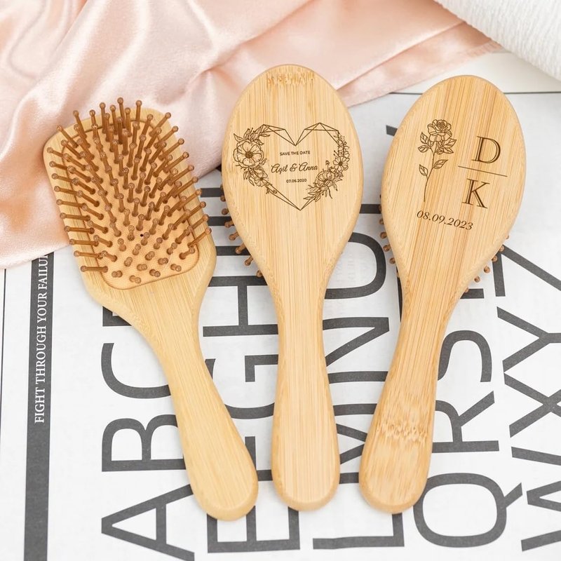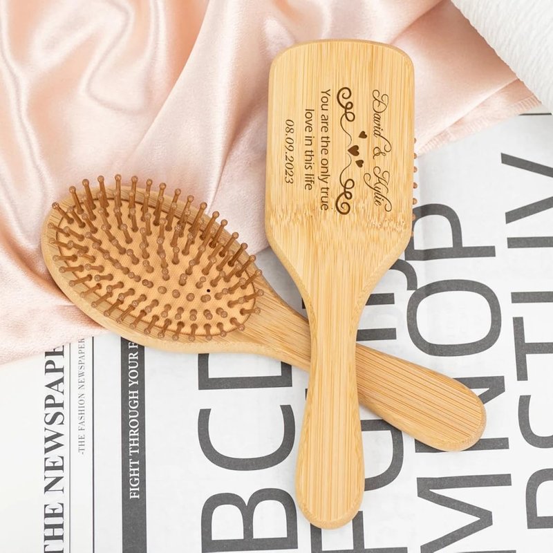 Personalized Bamboo Brushes for Women Custom Name Hair Brush Bridesmaid Hairbrush Detangling Brush For Curly Hair Thick Hair Birthday Gift for Wife Mom Grandma Friends Sister Her