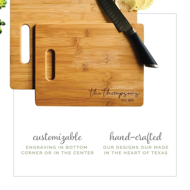 Personalized Bamboo Cutting Board - Handmade Rustic Kitchen Decor - Large Durable Butcher Block Alternative with Engraving - Eco-Friendly Gift for Housewarming or Wedding
