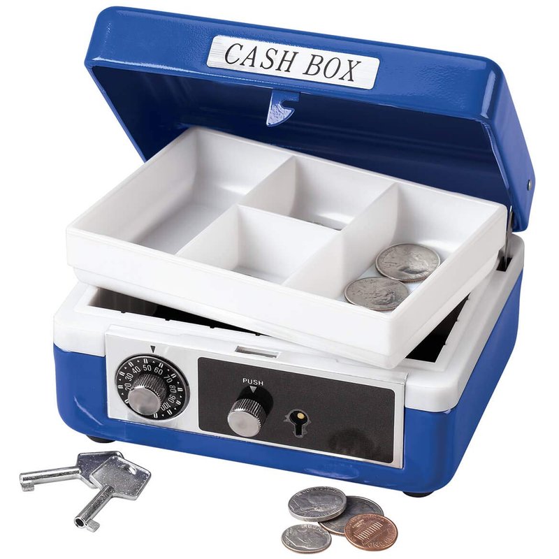 - Cash Box – Boasting double-lock security even siblings can’t hack, this children’s cash box is the ultimate place to safely stash cash and to introduce the beginning concepts of money management