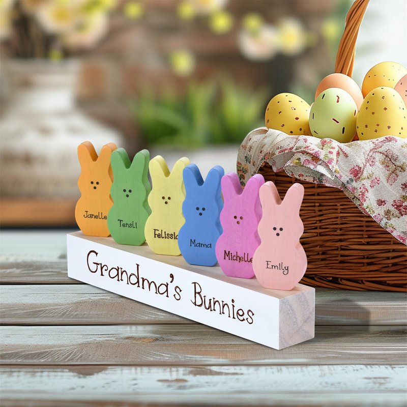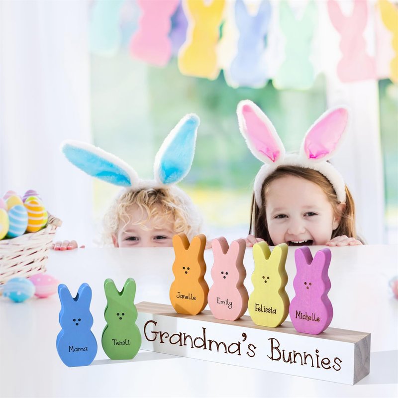 Personalized Easter Bunny Wooden Block Set with Name Custom Easter Bunny Peeps Set Easter Gift for Grandma mom