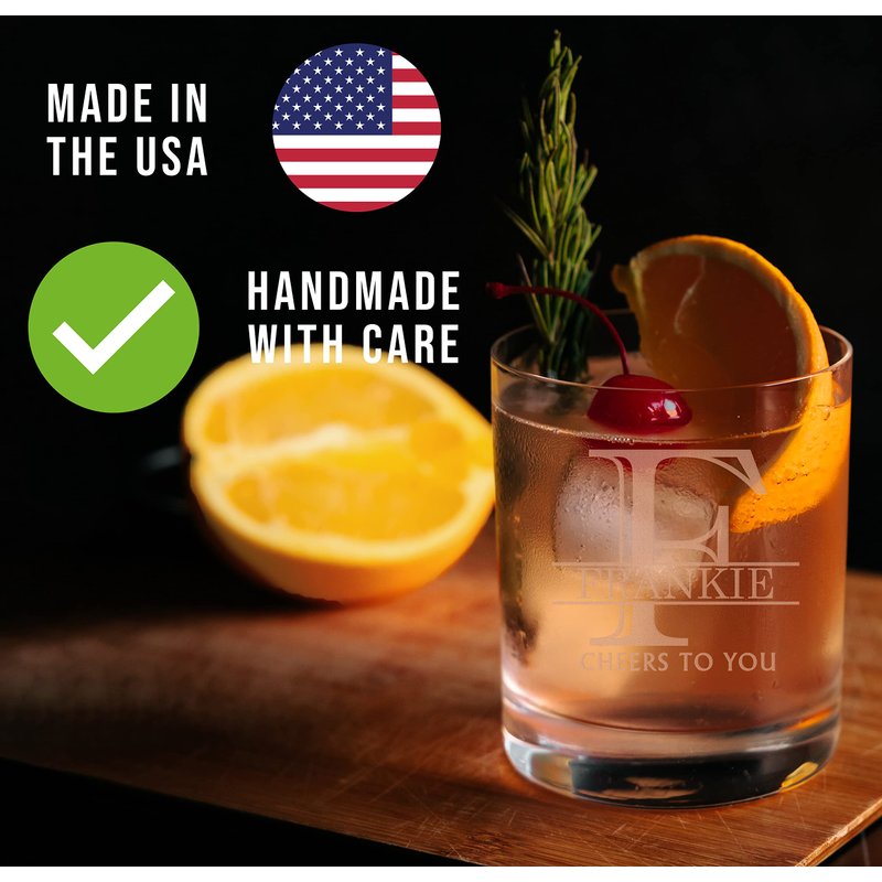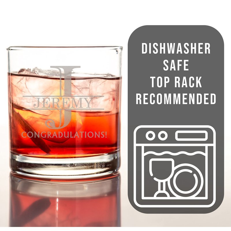- Make any birthday, anniversary, retirement, wedding, graduation, or other special event memorable with a customizable monogram whiskey rocks glass handmade by The Spotted Dog Company.