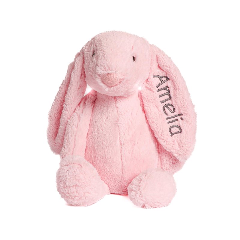 Personalized Super Soft Plush Bunny - Stuffed Animal Toy for Kids - Custom Gift with Embroidered Name on Ear for Easter, Baby Shower Gift (medium, pink)