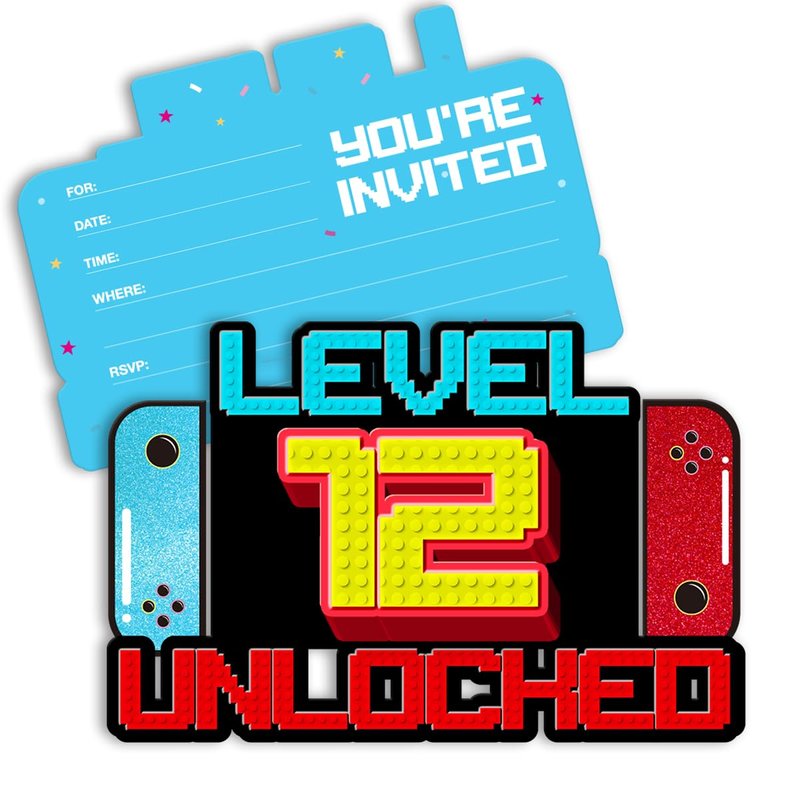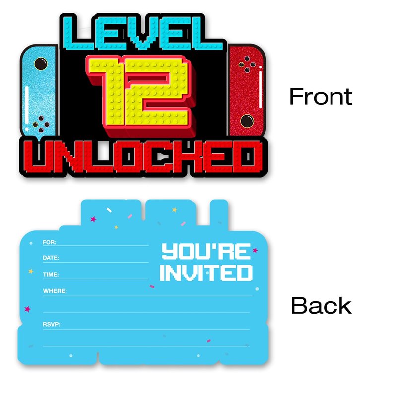 pertnate Video Game 12th Birthday Party Invitations Glitter Video Game 12 Year Old Boys Birthday Party Shaped Invitations with Envelopes, Set of 20