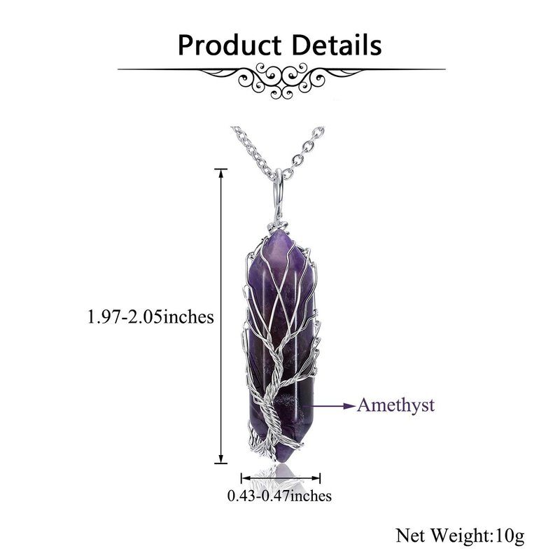 PESOENTH Amethyst Tree Of Life Wire Wrapped Reiki Healing Crystal Pendant Necklace Purple Quartz Gemstone Hexagonal Pointed Energy Stone Pendant Jewelry for Women