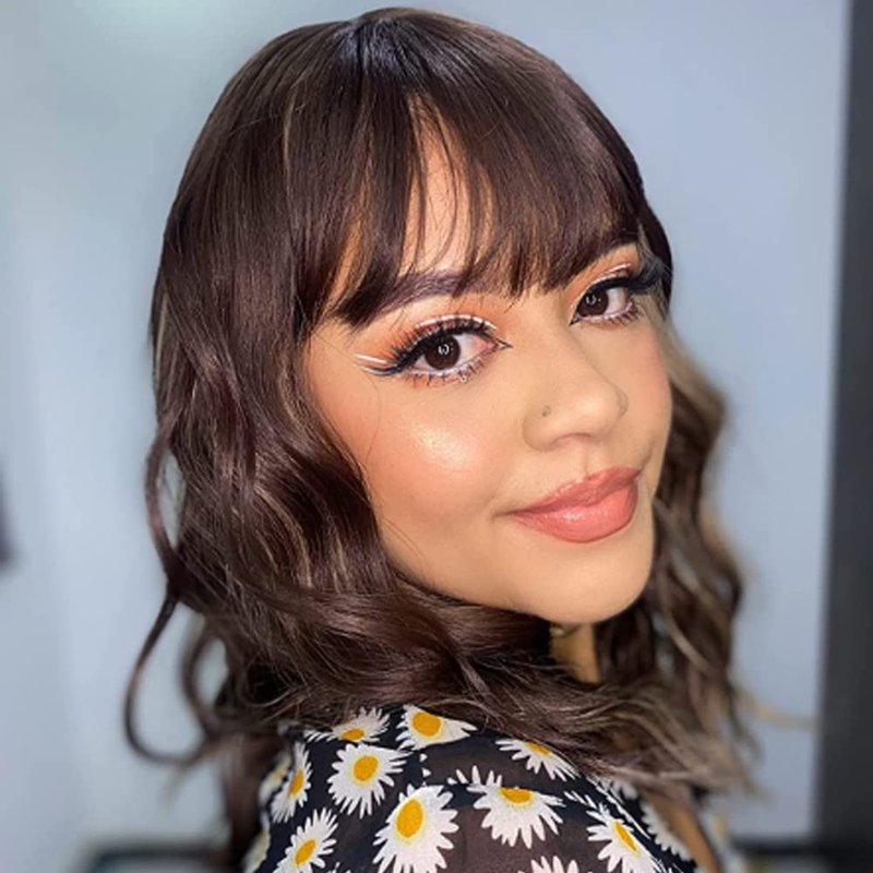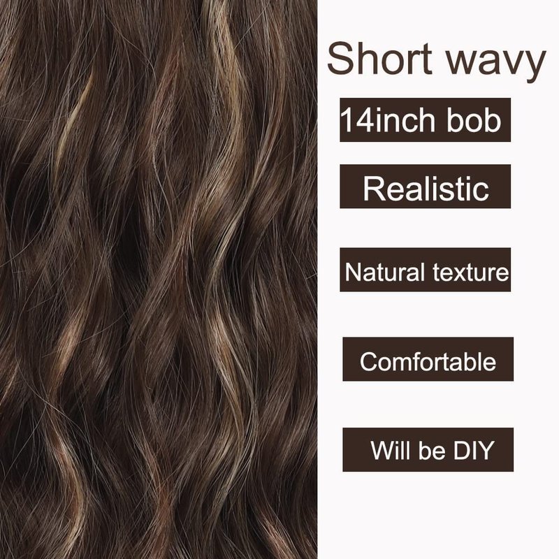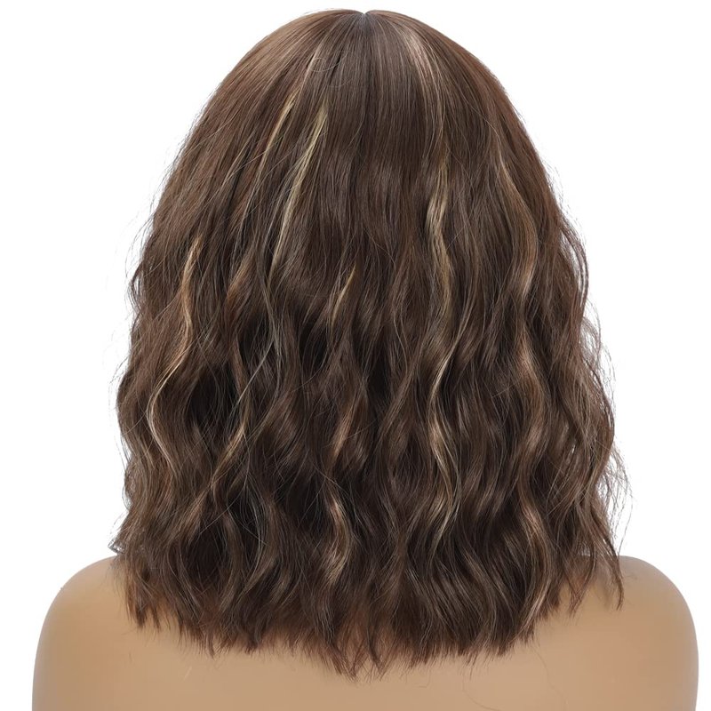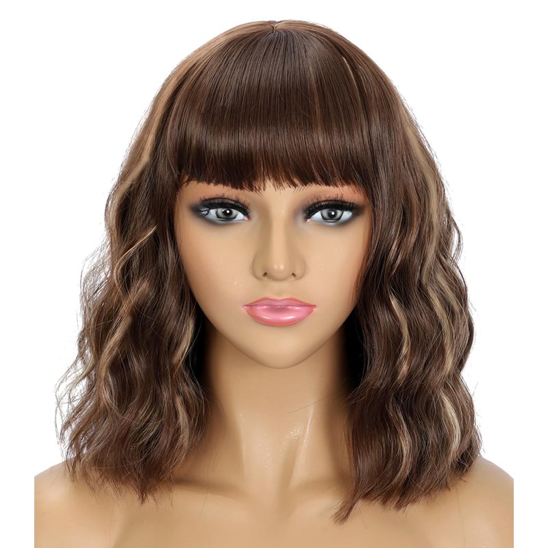 - 🤩.Realistic Wigs for Women Widely Use: This short wavy bob wig with bangs suitable for all face shapes.Short curly bob wigs usually has longer length, that you can cut as the style your like. Shoulder length brown highlights wigs for women can help you to make a prefect look for daily, wig party, dance, cosplay.