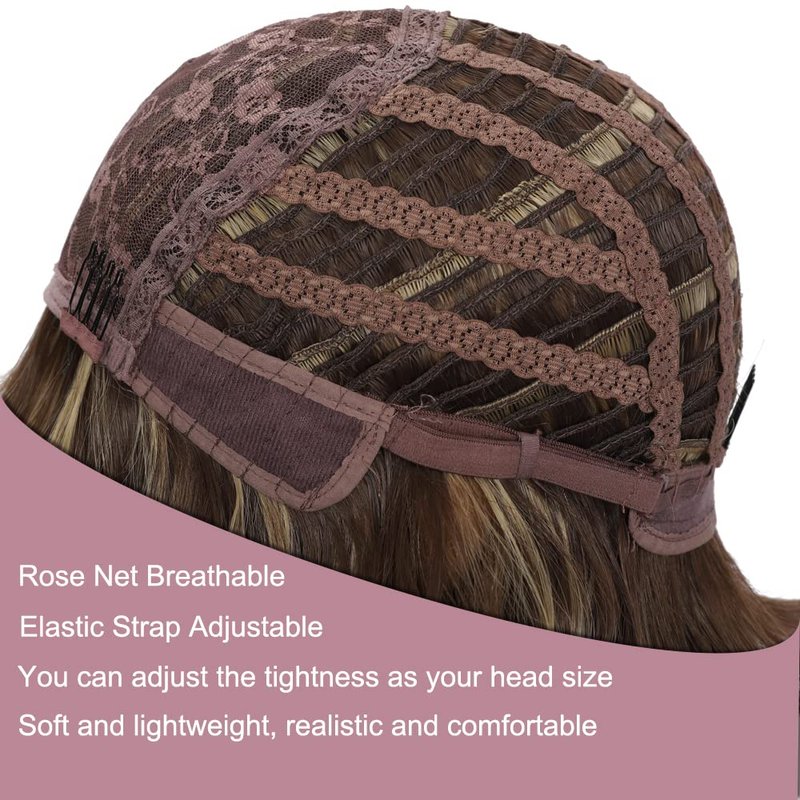 - 😍Easy Wear Wigs for Women: Bob wig with bangs is easy to put on and off, the Highlighted wig has adjustable straps, you can adjust the tightness to fit your head size. Short wavy bob wigs with bangs has clips inside to fix it on throughout wholesale party night.