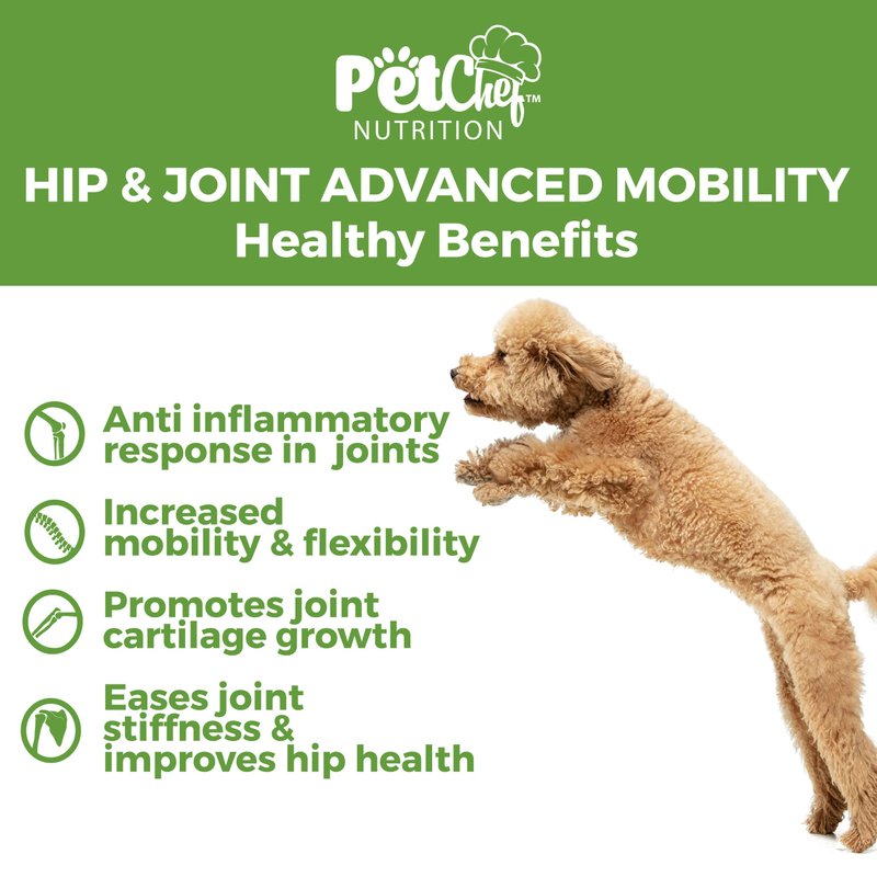 - Dog Preventative Care for Long-Term Hip and Joint Health - Incorporating Pet Chef Dog Hip Joint Supplement into your dog's routine can help prevent the onset of joint problems, ensuring your dog remains spry and agile well into their senior years, thanks to the proactive support of high-quality ingredients.