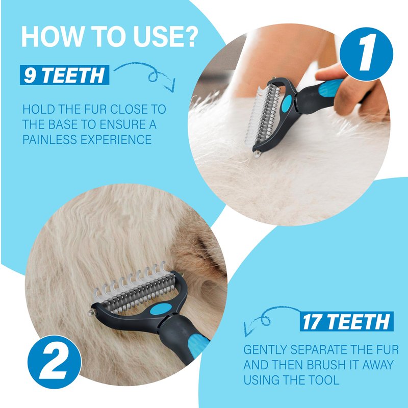 4、Conclude with the denser side (17 teeth) for thinning and shedding, achieving optimal grooming effects.