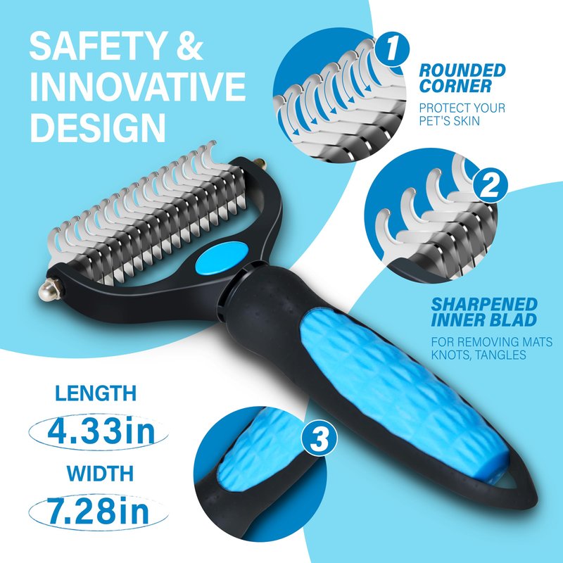 Pet Grooming Brush, Handheld Metal Blade Undercoat Dematting Rake, Double-Sided Extra Wide, Suitable for Long-Haired Dogs and Cats Comb, Focused on Removing Mats and Tangles (Blue)